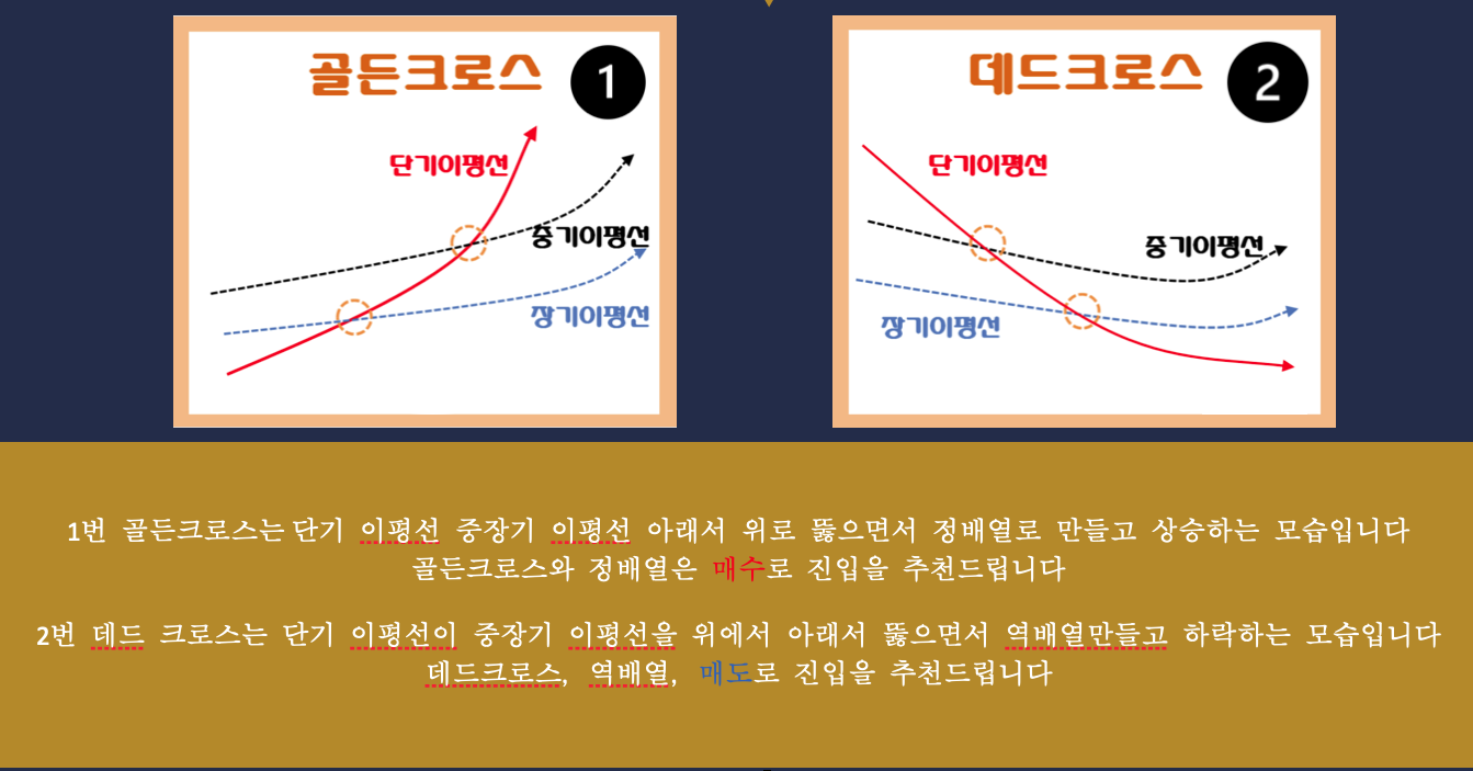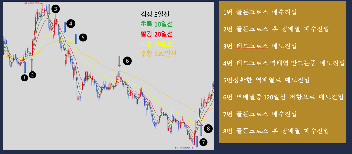 단순하게 지지와 저항으로 사용도 가능하며 골든크로스와 정배열일때 매수, 데드크로스와 역배열일때 매도
