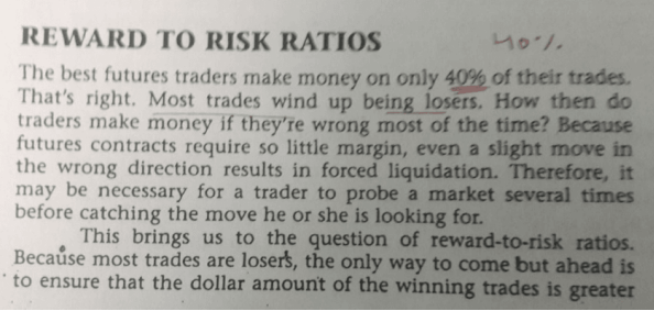 이 때문에 손실 대비 이익의 비율을 생각해야한다 트레이더들은 매매에서 대부분을 틀리기 때문에 수익 을 내기 위해서는 이익의 비율이 더 커야한다.